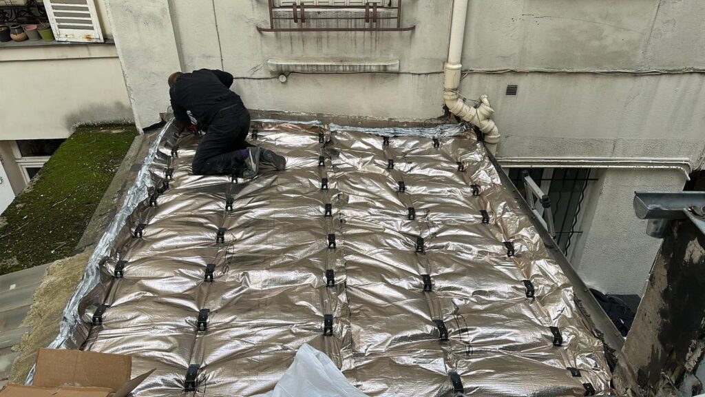 Pour compléter la rénovation, un isolant multicouche Triso Booster a été installé sous la couverture. Cet isolant est particulièrement adapté aux toitures parisiennes où l’espace est souvent limité mais où les besoins thermiques sont importants.